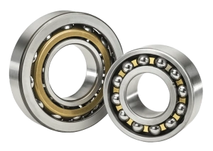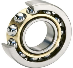 2. بلبرینگ تماس زاویهدار (Angular Contact Ball Bearing):این نوع برای تحمل بارهای ترکیبی شعاعی و محوری با زاویه تماس مشخص طراحی شده و در دستگاههای با سرعت بالا کاربرد دارد.